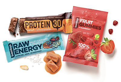Bombus products include not only fruit-based RAW bars made from purely natural ingredients but also protein bars and 100 % fruit gummies. All products are made without added sugars, gluten, palm oil, artificial preservatives, or colorings. A large portion of the portfolio is suitable for vegans and individuals with celiac disease.